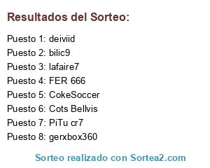 Lista de participantes: FER 666, lafaire7, Cots Bellvis, PiTu cr7, deiviid, CokeSoccer, bilic9, gerxbox360.