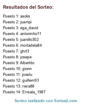 Lista de participantes: Robertito jimenez, Erick Daniel Galindo, Julio Alberto luna, Toño Velasco, Roberto vs, Erick sg, Marco de russy, Angel fdz, Juan pablo duarte, Fobia cm, Oscar millan sanchez, Fallo agubraa, Jose manuel jonkar, Miguel adrian gm, Andres vazquez perez, Omar muñoz, Juan manuel calderón, Aldahir lozano, Geme llamas abad, Luigi castro.