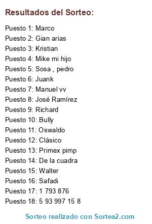 Resultados del sorteo: