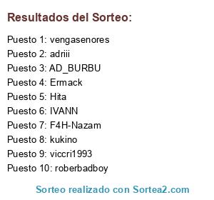 Lista de participantes: Ermack, Hita, AD_BURBU, vengasenores, viccri1993, adriii, roberbadboy, kukino, F4H-Nazam, IVANN.
