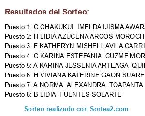 Resultados del sorteo: