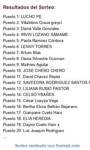 Resultados del sorteo: