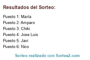 Lista de participantes: Amparo, Chiki, Javi, Jose Luis, María, Nico.