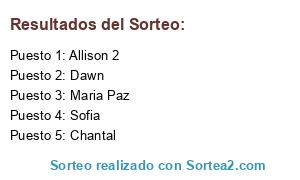 Lista de participantes: Allison 1, Allison 2, Celia, Chantal, Dawn, Diana, Maria Paz, Mia, Rose, Sofia, Zoey.
