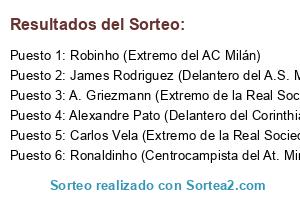 Lista de participantes: Didier Drogba (Delantero del Galatasaray), Ronaldinho (Centrocampista del At. Mineiro), A. Griezmann (Extremo de la Real Sociedad), James Rodriguez (Delantero del A.S. Monaco), Freddy Guarín (Centrocampista del Inter), Antonio Di Natale (Delantero del Udinese), Giusseppe Rossi (Delantero de la Fiorentina), Carlos Vela (Extremo de la Real Sociedad), Baines ( Defensa del Everton), Alexandre Pato (Delantero del Corinthians), Robinho (Extremo del AC Milán), Iker Muniain (Delantero del Athletic de Bilbao).