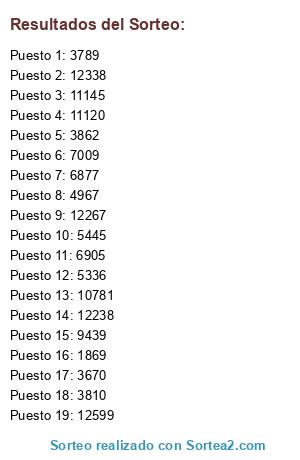 Resultados del sorteo: