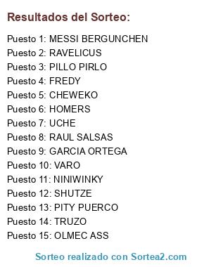 Lista de participantes: VARO, UCHE, TRUZO, CHEWEKO, SHUTZE, HOMERS, RAUL SALSAS, PILLO PIRLO, NINIWINKY, GARCIA ORTEGA, FREDY, OLMEC ASS, RAVELICUS, MESSI BERGUNCHEN, PITY PUERCO.