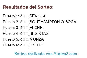 Lista de participantes: 🔸UNITED, 🔸BESIKTAS, 🔸SEVILLA, 🔸ELCHE, 🔸MONZA, 🔸SOUTHAMPTON O BOCA.