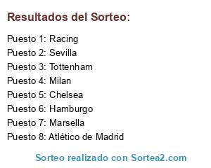 Lista de participantes: Hamburgo, Tottenham, Chelsea, Milan, Racing, Sevilla, Marsella, Atlético de Madrid.