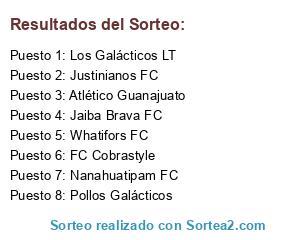 Lista de participantes: Atlético Guanajuato, Los Galácticos LT, Jaiba Brava FC, Nanahuatipam FC, Pollos Galácticos, FC Cobrastyle, Whatifors FC, Justinianos FC.