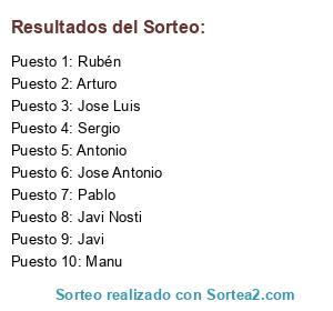 Lista de participantes: Javi, Sergio, Antonio, Manu, Jose Antonio, Javi Nosti, Pablo, Arturo, Rubén, Jose Luis.