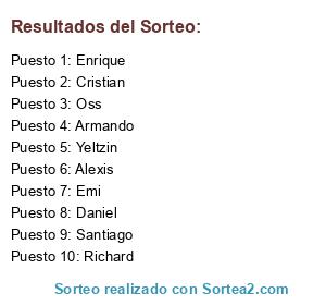 Lista de participantes: Cristian, Oss, Armando, Santiago, Emi, Yeltzin, Enrique, Daniel, Richard, Alexis.