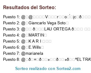 Lista de participantes: @@✰❣︎V̫̫ꫀr͜͡ó̸ꪀįc͎𝐚 ̫̫, @Giancarlo Vega Soto, @marianela, @MARTIN, @E.Wills, @K A R I ✨✨, @꧁ 💜LAU ORTEGA 💜 ꧂, @🤟🏻❤️🇻🇪EL TRAVIEZO🇻🇪❤️🤟🏻.