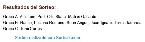 Lista de participantes: Nacho, CrIs Skate, Luciano Romano, Tomi Pod, Matias Gallardo, Tomi Cortes, Sean Angus, Ale, Juan Ignacio Torres Iadarola.