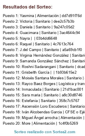 Log del sorteo: