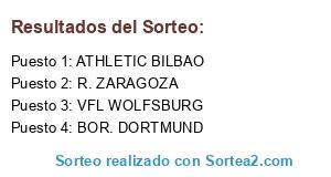 Lista de participantes: ATHLETIC BILBAO, VFL WOLFSBURG, BOR. DORTMUND, R. ZARAGOZA.