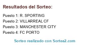Lista de participantes: VILLARREAL CF, R. SPORTING, MANCHESTER CITY, FC PORTO.