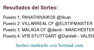 Lista de participantes: PANATHINAIKOS @Noan, VILLARREAL CF @ELSTIFMAISTER, MALAGA CF @david - MANCHESTER UTD @crebocar, VFB STUTTGART @Danitelli - VALENCIA CF @Candelus.