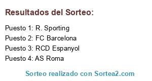 Lista de participantes: AS Roma, FC Barcelona, RCD Espanyol, R. Sporting.