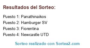 Lista de participantes: Hamburger SV, Fiorentina, Newcastle UTD, Panathinaikos.