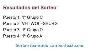 Lista de participantes: 1º Grupo A, VFL WOLFSBURG, 1º Grupo C, 1º Grupo D.