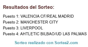 Lista de participantes: LIVERPOOL, MANCHESTER CITY, VALENCIA CF/REAL MADRID, AHTLETIC BILBAO/UD LAS PALMAS.