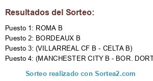 Lista de participantes: (MANCHESTER CITY B - BOR. DORTMUND B), ROMA B, (VILLARREAL CF B - CELTA B), BORDEAUX B.
