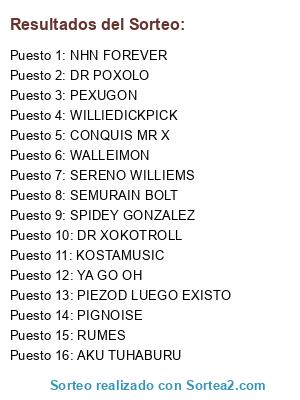 Lista de participantes: RUMES, PEXUGON, YA GO OH, DR XOKOTROLL, DR POXOLO, SERENO WILLIEMS, WALLEIMON, AKU TUHABURU, KOSTAMUSIC, PIGNOISE, SEMURAIN BOLT, PIEZOD LUEGO EXISTO, SPIDEY GONZALEZ, CONQUIS MR X, NHN FOREVER, WILLIEDICKPICK.