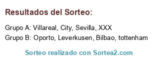 Lista de participantes: Sevilla, Villareal, Leverkusen, Bilbao, tottenham, Oporto, City, XXX.