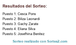- 2º lugar ~ 1200 piedras o 40 boletos: Biliza Leonardi