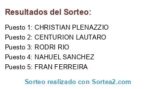 Lista de participantes: RODRI RIO, NAHUEL SANCHEZ, CENTURION LAUTARO, CHRISTIAN PLENAZZIO, FRAN FERREIRA.