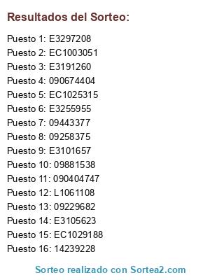 Resultados del sorteo: