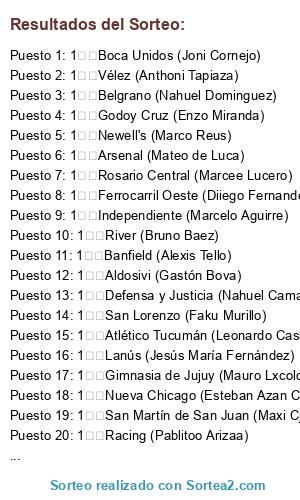 - Puesto 30: 1 Argentinos Jrs (Leonel Viyú)