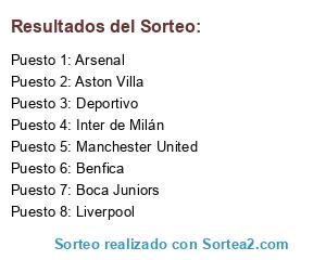 Lista de participantes: Benfica, Inter de Milán, Liverpool, Aston Villa, Boca Juniors, Manchester United, Deportivo , Arsenal.