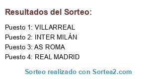 Lista de participantes: REAL MADRID, VILLARREAL, INTER MILÁN, AS ROMA.