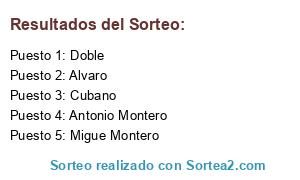 Lista de participantes: Alvaro, Antonio Montero, Migue Montero, Doble, Cubano.