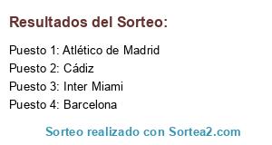 Lista de participantes: Atlético de Madrid, Barcelona, Cádiz, Inter Miami.