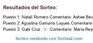 - Ganador 1: Natalí Romero Comentario: Ashee Berardo Piitu Grauche Cynthia Lucero