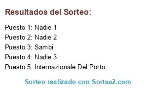 Lista de participantes: Nadie 1, Nadie 2, Nadie 3, Internazionale Del Porto, Sambi.