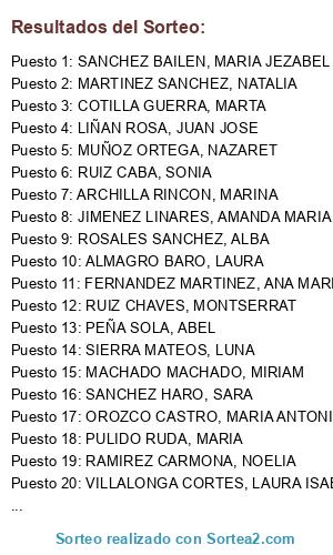 - Puesto 1: SANCHEZ BAILEN, MARIA JEZABEL