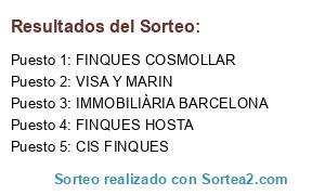 Lista de participantes: VISA Y MARIN, FINQUES MONTANÉ, AMAT IMMOBILIÀRIS, FINQUES COSMOLLAR, FINQUES BUSINFREU, SALAMAÑA, HAMLET, FINQUES GIBERT, GUINOT PRUNERA, GESTORIA CERDAN, FINQUES SUBIRANA, IMMOBILIÀRIA BARCELONA, FINQUES HOSTA, CIS FINQUES.