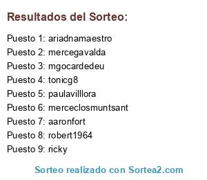 Este sorteo ha sido certificado por Sortea2. Sortea2 garantiza que: