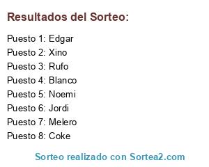 Lista de participantes: Coke, Edgar, Xino, Blanco, Jordi, Noemi, Melero, Rufo.