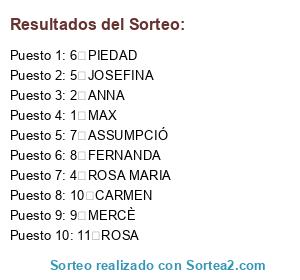 Resultados del sorteo: