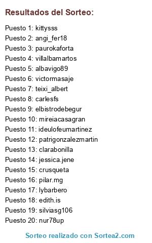Lista de participantes: cgenisexposito , tapissatsblesa , mdroque , sdalmau , enricniell , rosita.m.f , elisabet_gi , merypayet , chicho_sc , marluka73 , cristian241988 , martateam17 , pilidaniela , pepisubira , mmmireeiaa , pilar.mg , gouruth , clarabonilla , ariadnacateura , veroporfe , pilyria , javidiaz_tri , mireiacasagran , ventu18 , ddreagracia , susannamv2436 , marta_trias , mireia623 , betoferrer , susannaona9 , laufdezp , caarla95 , margama_62 , mireiona_81 , t2g2005 , albertlauraortiz2810 , dk8juanjo , miriamb_b , _patriciarn , mireia_mm1008 , bany_palafrugell , opticagracia , killmakeupfx , m.dolors7 , laurentis12 , raulicarla , edith.is , franciscor594 , krix7 , vanessapeiroroyan , irenenoa , pocinsdelajovita , emiagudo , tere.af , lauranc4 , miriammmgh , patrigonzalezmartin , neuscolomer , imms012 , finamb_22 , sara_ve_fe , iriminiblog , maryreggae , quirantefrank , criscabe22 , jelengreen , jordiridao , jorx84 , glou28 , un_papa_cualquiera , summer_storm72 , raquelmartincruz , jessica.jene , miriammerino , laura_paz_q , ymividaque , cristinamarti85 , perpy_s , andreguiky , mari_ro95 , marionahh , carles_arcas , anna_b.f , aixoflors , pere.bataller , birresbraves_trail , aleeiixfoont , raul1979mp , rbusana74 , luky_cl , amygvalay , npragi , elbistrodebegur , natalia.ribot , silvia__________ca , miriamna83 , contreras.antoniomartinez , carlesfs , tania_gm10 , maricarmenyuste , claraparals , cullell , annabussot , kittysss , la_anfapa , laucasquero7 , gastroiruela , perestanyol , artalfoc , diver1125 , aurisolcentre , falop , jessicarojanoguerrero , noemi_83_ , titohichi , regalantsomriures , angi_fer18 , airpals_ , vitassanapalafrugell , alba_salabert , paurokaforta , annadispes , magdafloristes , susanaplaja , ireneg1970 , silviasg106 , xevidh , nur78up , lybarbero , derar253 , mamadebabylia , tetemolon16 , villalbavictor64 , monicaisernamir , ribesruvira , anna__puigde , fatii_cg , asunlujan , ferreteriapalafrugell , angcato , imma_riera_font , claudiasoto3 , raulmoreno1981 , alirojas31 , amaliabonete , sarafairen , angelesdotes8 , gloriavillalbayoga , meriestetic , ismaduranp , lauragvissa , mra2618 , elenacomermabroto , rosermm , gaudeix_amb_salut , albertsayols , aviz1983 , gaudeix_delspostres , xeniuki , teixi_albert , clarasayools , victormasaje , naturepalafrugell , albavigo89 , themonkeytrebor , barantonio_palafrugell , lacasa_luis , lasredes_de_eva , calçatscomas , albapaezb , janasoli00 , globosfestivalia , festesesclanya , caarlacp10 , loulinsky , conxitaestanyol , villalbamartos , ideulofeumartinez , _joan_vidal , low_cost_4b , montseroselllopez , aliciateixidor , alba_bp0 , sabatescribano , dosbilletesdeavion , albaavg , indao97 , maribelrb2708 , perecosta22 , miriampaezbernal , mireiaizca22 , anropala , venteocarmona , gemmapolicarpo , crusqueta , evatorresn , gemmaxp , .