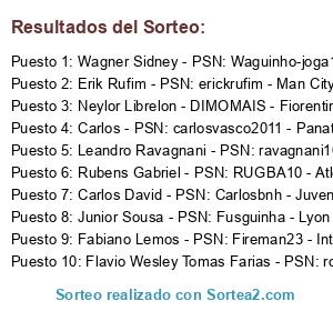 - Puesto 1: Wagner Sidney - PSN: Waguinho-joga10 - Cruzeiro