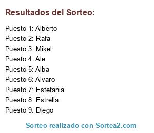 Lista de participantes: Rafa, Diego, Mikel, Alba, Alvaro, Ale, Estefania, Estrella, Alberto.