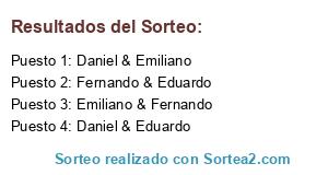 Lista de participantes: Daniel & Emiliano, Fernando & Eduardo, Daniel & Eduardo, Emiliano & Fernando.
