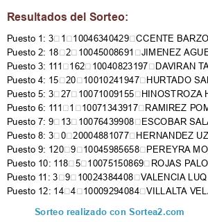 Resultados del sorteo: