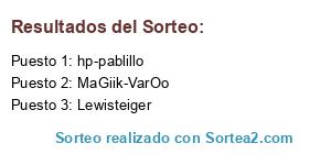 Lista de participantes: aquiso360, Dj Capa, eNNz0, hp-pablillo, iLuX3D, Lewisteiger, MaGiik-VarOo, markillosbm69, Mesuz, Mozzy, nenneh8, oscarmj11, oscar_rcob, Plamen_1996, PUPOXX, Râiddenz, Spacer, xCrisT-_.